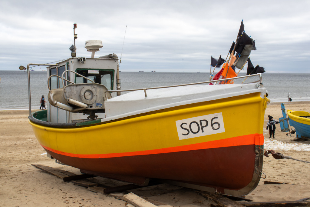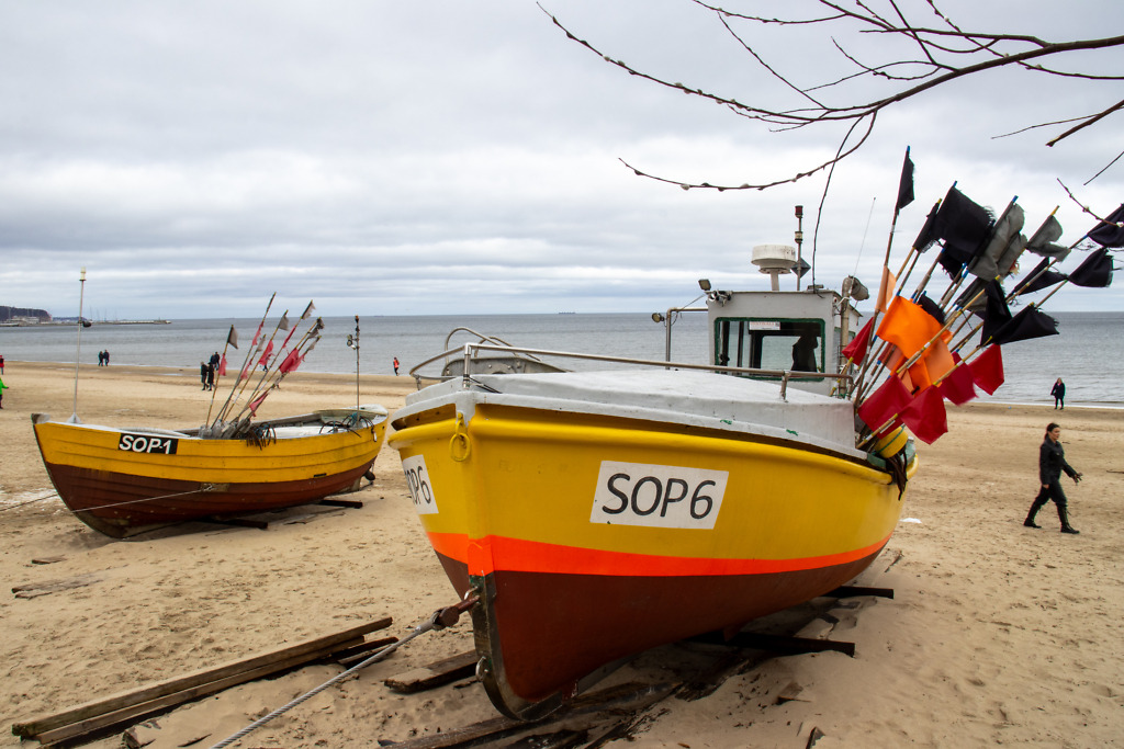Plaża w Sopocie jest albo „pusta”, ale ciężko się opędzić od ptaków. Mniejszych i większych 🙂 Ale też można popodziwiać kutry. Szkoda, że nie stały bliżej wody 🙂